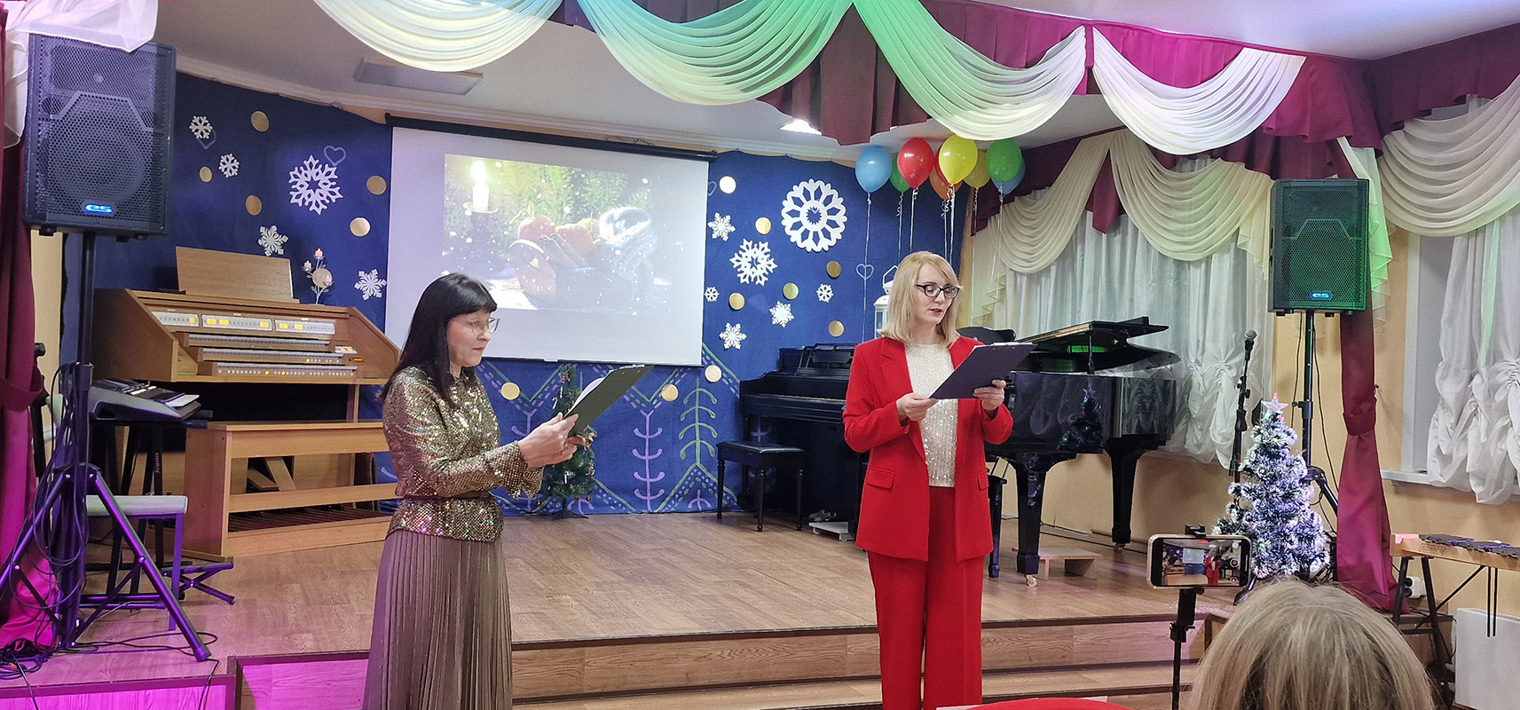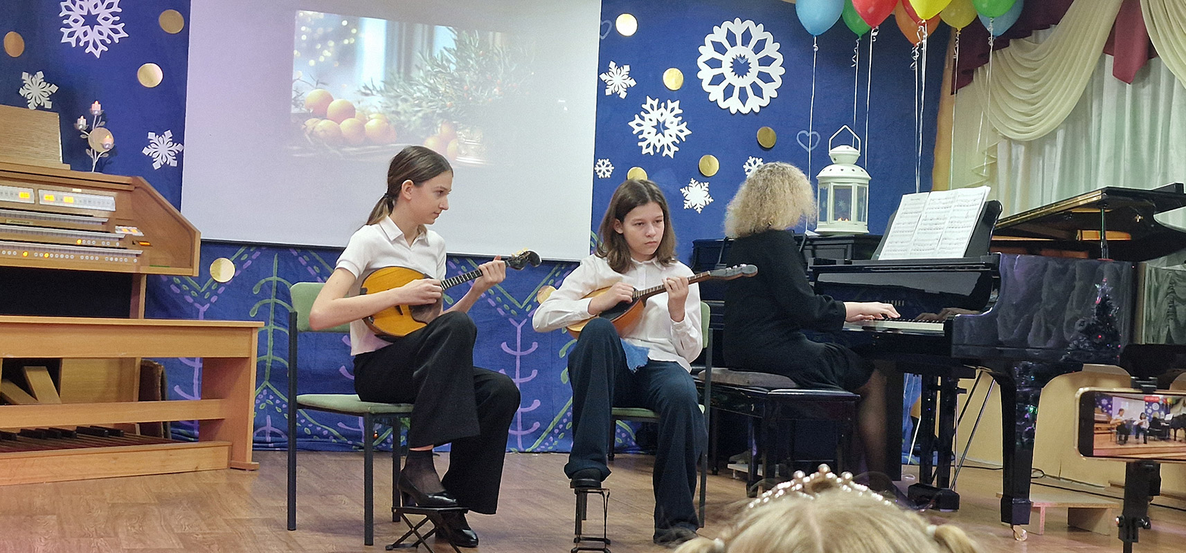 17 декабря 2025 г. в ДШИ №20 "Муза" прошел самый чудесный и любимый всеми новогодний праздник. В этом году ведущие концерта Э.А.Полонская и А.С.Лаптева решили его назвать "Мандариновое настроение". Преподаватели школы устроили для учащихся и их родителей праздник с яркими новогодними концертными номерами, танцами, песнями, игрой "Угадай мелодию". В праздничную атмосферу внесли волшебство главные герои праздника - Мандаринки (Юрина Евгения и Юрина Анна). Они подготовили и провели веселые викторины, поделились интересными фактами о мандаринах. Всем участникам были вручены памятные подарки.
