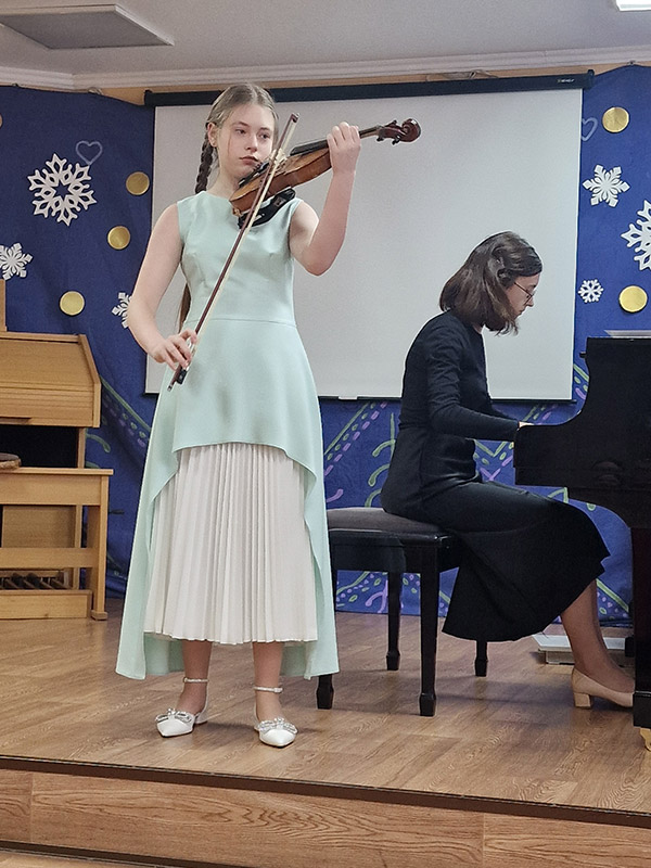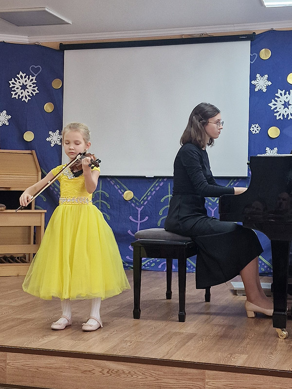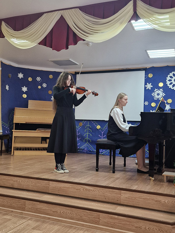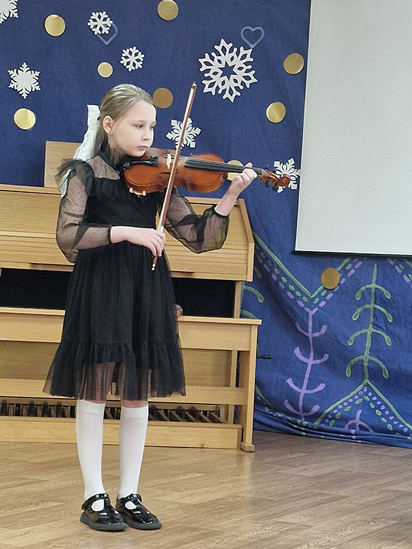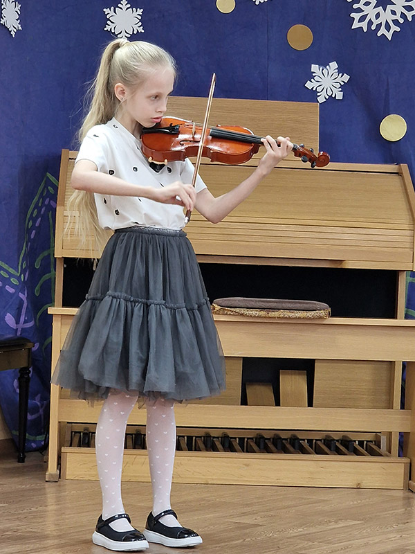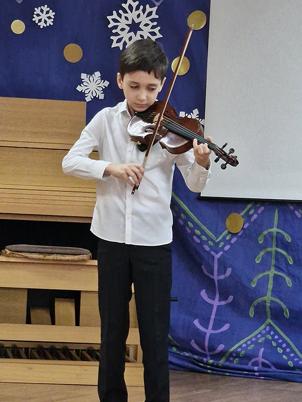 17-го декабря в нашей школе состоялся отчётный по итогам первого полугодия концерт учащихся струнного отделения. Ребята представили разнообразную, интересную программу. Уровень подготовки концертных номеров был разным, но всех учащихся объединило одно - любовь к такому сложному, многозадачному, но вместе с тем прекрасному и выразительному инструменту, как скрипка и искреннее стремление достичь мастерства исполнения музыки на нем. И это достойно уважения и поддержки со стороны нас, преподавателей.