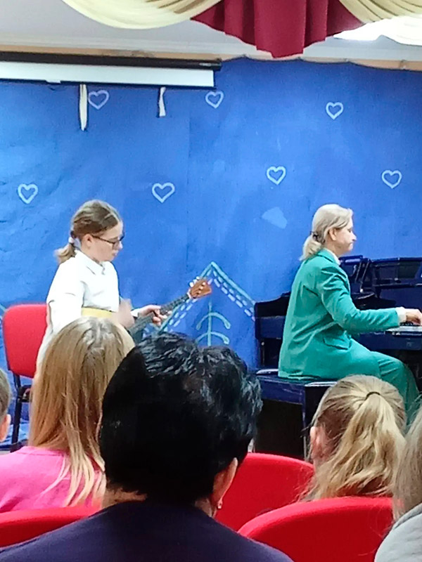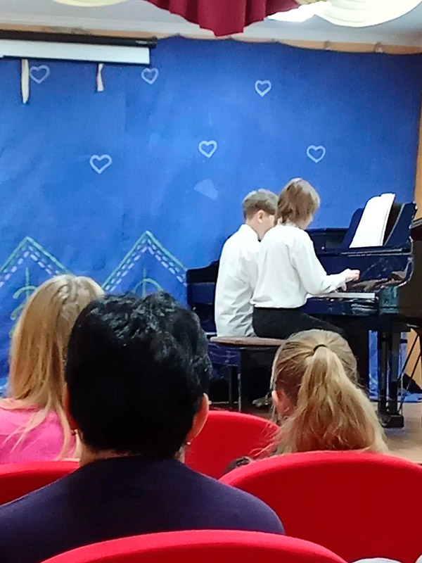 Уважаемые друзья! Спешим поделиться с вами впечатлением от совершенно роскошного, необыкновенно радостного и яркого концерта, который состоялся в нашей школе 27-го февраля! Концерт назывался "Три кита в музыке" ("Мы поем, танцуем, дружно маршируем!") Концерт прошел на такой высокой, на такой мощной энергетической волне, был таким бодрым, радостным и позитивным, что, без всякого сомнения, надолго зарядил слушателей замечательным, отличным настроением! Словно в сказочном калейдоскопе сменяли друг друга изумительные концертные номера, исполненные на высочайшем профессиональном уровне! Фортепиано, скрипка, балалайка, танцевальные коллективы, ансамбль гитаристов, вокал, изумительнейший хор!!... Здесь было все!... Переполненный публикой зал, не переставая, скандировал "Браво!", оглушительные аплодисменты не смолкали, а лица зрителей просто светились от счастья, радости и вдохновения! Благодарим от всего сердца за этот чудесный праздник, праздник души и сердца, который нам подарили участники концерта и несравненная ведущая - лектор-музыковед Лола Каримовна Азимова, которая организовала и провела этот фантастически яркий концерт!!
