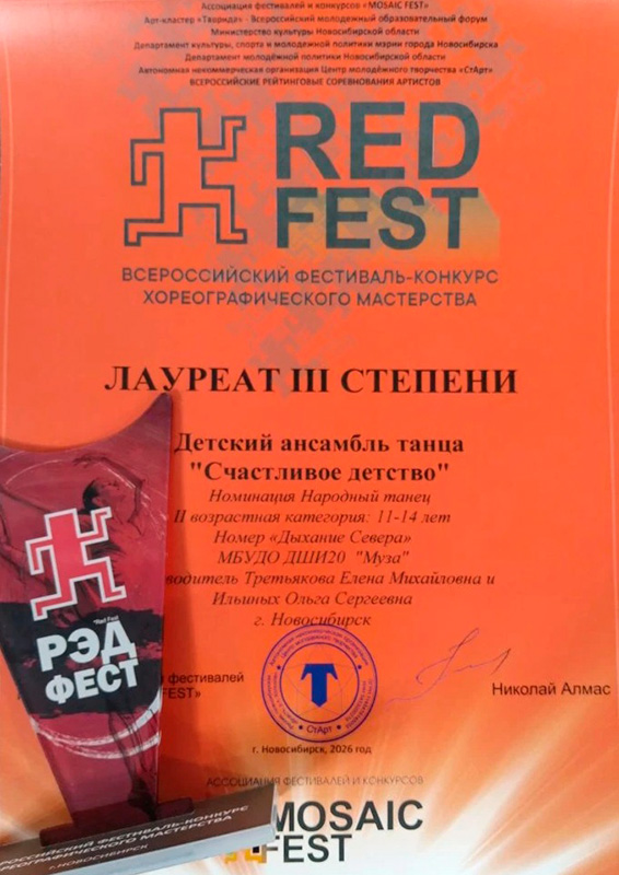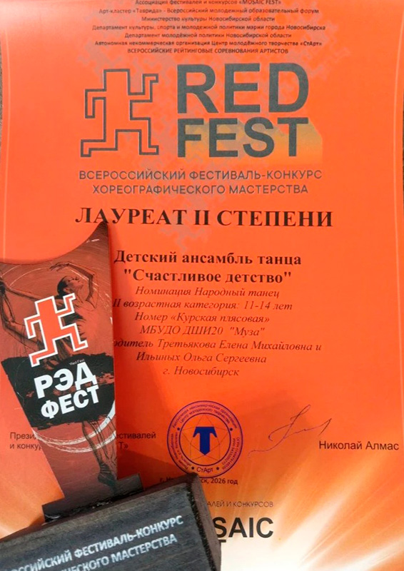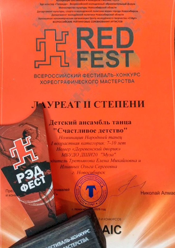 Участвуя 1 марта во Всероссийском фестивале-конкурсе хореографического мастерства "RED FEST", наши воспитанники стали дважды Лауреатами 2-ой и Лауреатом 3-ей степени.