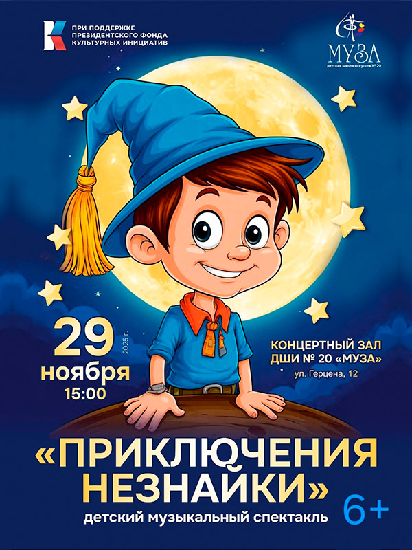 В новосибирской Детской школе искусств №20 "Муза" стартовал культурно-образовательный проект - постановка музыкального спектакля "Приключения Незнайки" по мотивам знаменитого произведения Н. Носова, реализация которого стала возможной при поддержке Президентского Фонда культурных инициатив. Этот проект, получивший высокую экспертную оценку, направлен на развитие детского творчества и является частью направления "Великое русское слово". Он входит в категорию образовательных и наставнических программ в области культуры, искусства и креативных индустрий.
